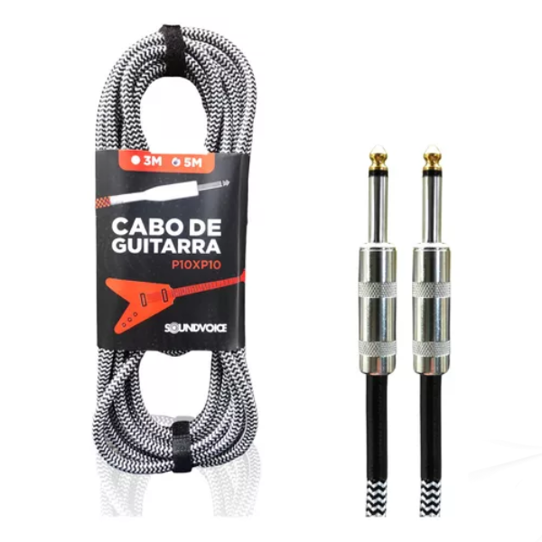 Cabo Plug P10 Mono Top 3M Áudio Som Guitarra Violão Teclado