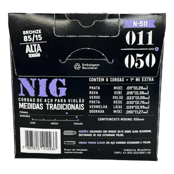 Encordoamento 011 Aço Violão Tensão Light Nig N511