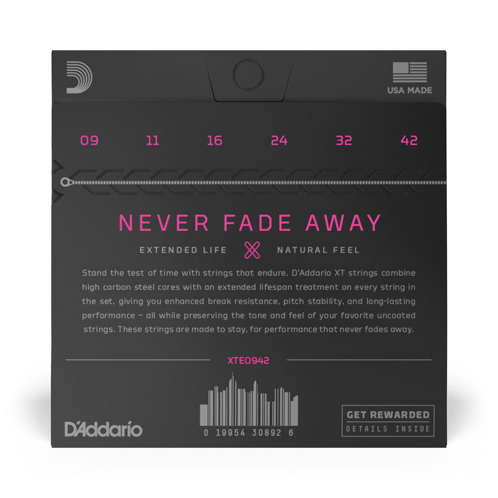 A D Addario XT para guitarra combina núcleo de aço de alto carbono com revestimento ultrafino, prolongando sua vida útil.As cordas revestidas XT possuem maior durabilidade, resistência, estabilidade de afinação e desempenho de longa duração - tudo isso preservando o timbre natural e mantendo a mesma sensação de suas cordas favoritas sem revestimento.